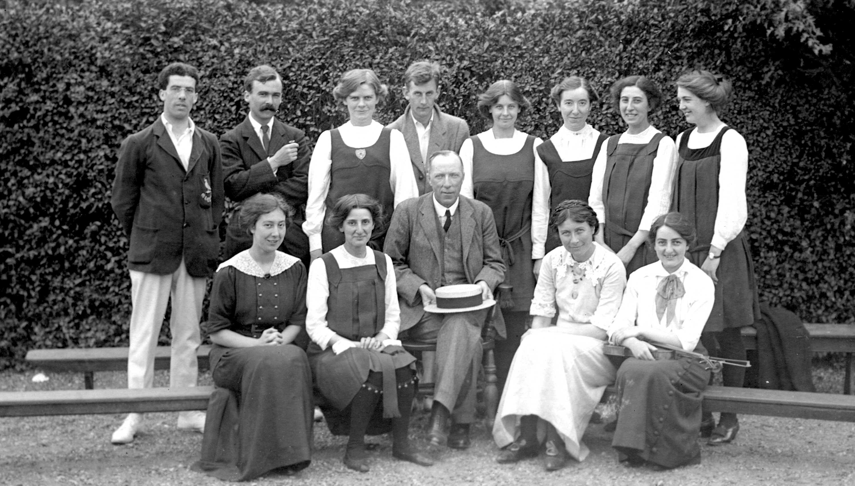 Winifred in the front row on the left taken at Stratford-upon-Avon with Cecil Sharp and Douglas Kennedy in the middle.